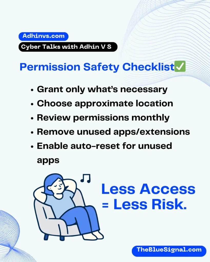Set a reminder to review app and browser permissions regularly. - Enable Permission Auto-Reset