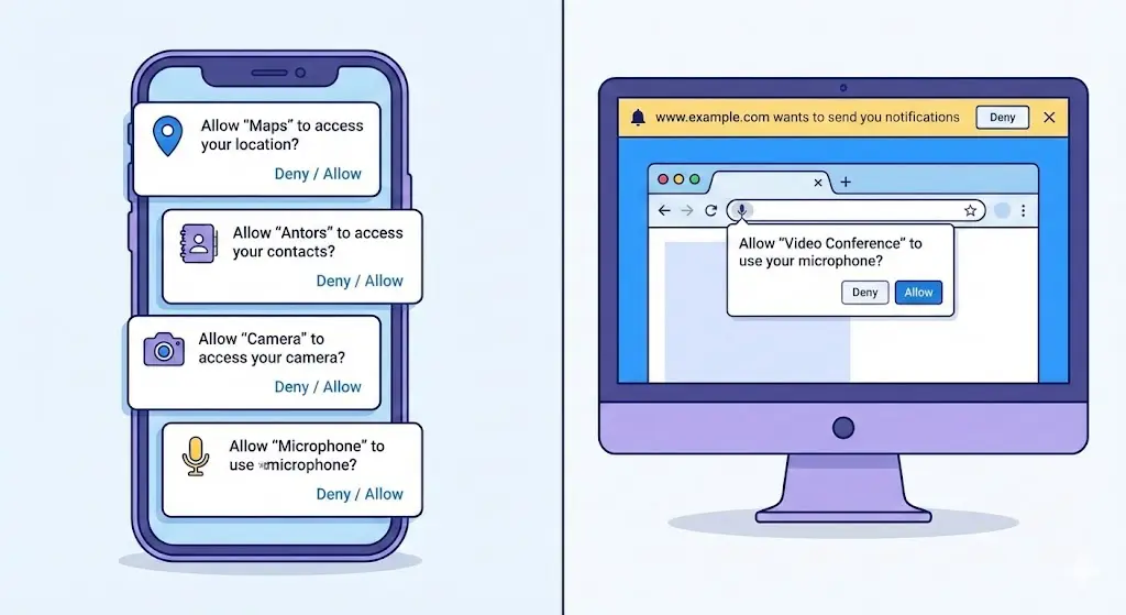 App and browser permissions are digital gatekeepers. They control what apps and websites are allowed to access on your device such as your camera, microphone, files, location, contacts, clipboard, or browsing activity.